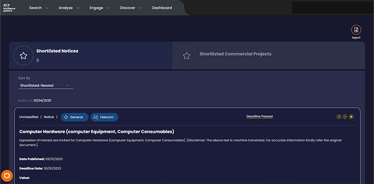 Tracker has a wide range of tools to support sales and business development managers to identify more ‘win now’ opportunities, build long-term pipeline and discover leads.